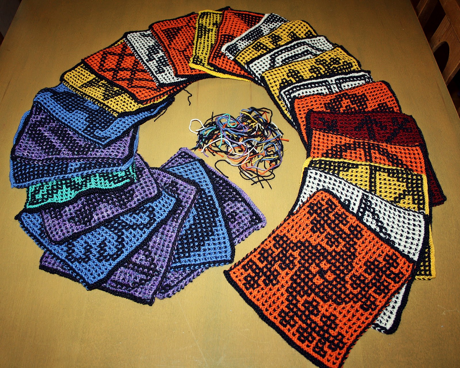 Jeder Teilnehmer wühlt noch nach den letzte Sockenresten und es es wird versucht kurzfristig ein paar Decken in Gemeinschaftsarbeit hinzubekommen.
